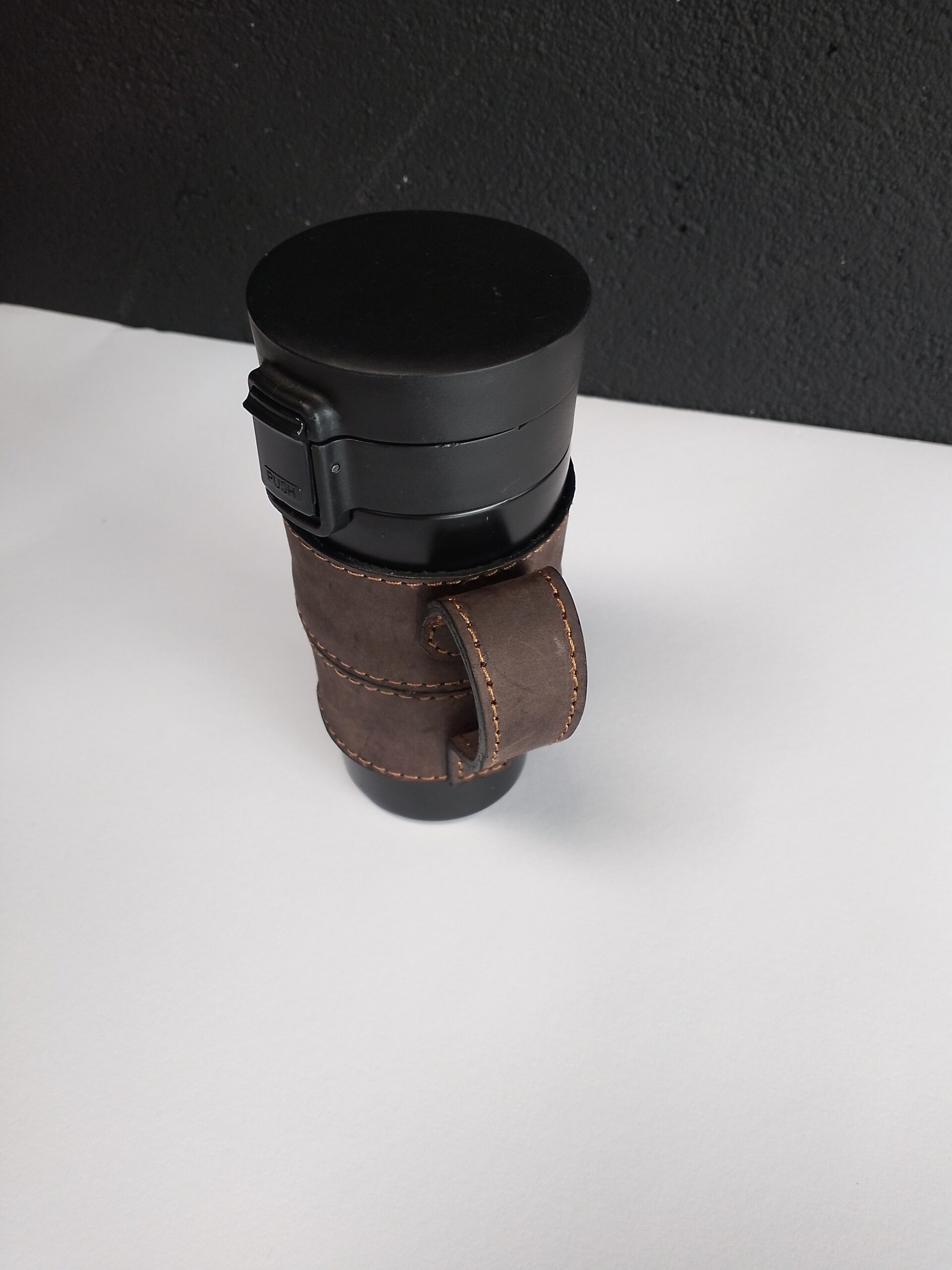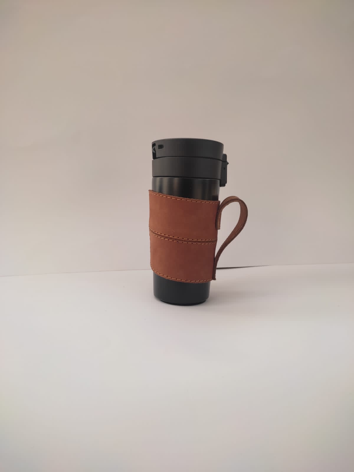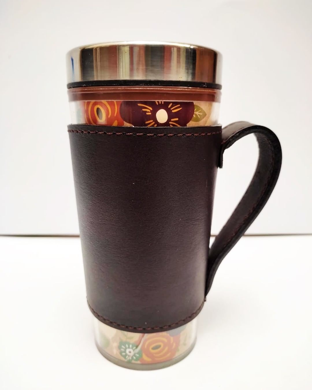 The leather mug holder is stitched to perfection, ensuring maximum comfort and care while handling your favorite beverages. Its ergonomic design provides a firm grip, making every sip a pleasure.