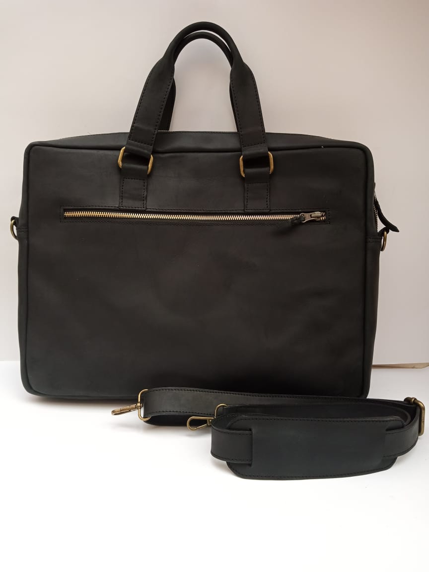 This sophisticated leather Laptop bag is the perfect blend of style and functionality, designed for the modern professional. Featuring a sleek exterior with both front and back pockets for easy access to essentials, it opens to reveal a meticulously lined interior with multiple compartments, ensuring your laptop and documents are organized and secure. The briefcase includes a short strap for hand carriage and a long detachable strap for comfortable shoulder wear, making it versatile for any occasion.